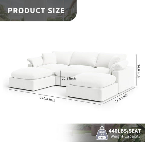 Cloud Modular Sectional Sofa, Oversized Convertible Modular Cloud Couch, Down Feather Filled Sectional Sofa Comfy Upholstered Deep Seat Couches for Living Room, Sofa Covers Washable & Replaceable A124-B0DJ7B7VM6