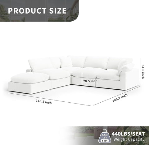 Cloud Modular Sectional Sofa, Oversized Convertible Modular Cloud Couch, Down Feather Filled Sectional Sofa Comfy Upholstered Deep Seat Couches for Living Room, Sofa Covers Washable & Replaceable A124-B0DJ7BC652