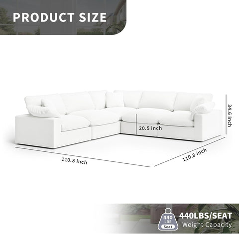 Cloud Modular Sectional Sofa, Oversized Convertible Modular Cloud Couch, Down Feather Filled Sectional Sofa Comfy Upholstered Deep Seat Couches for Living Room, Sofa Covers Washable & Replaceable A124-B0DJ7BTQYB