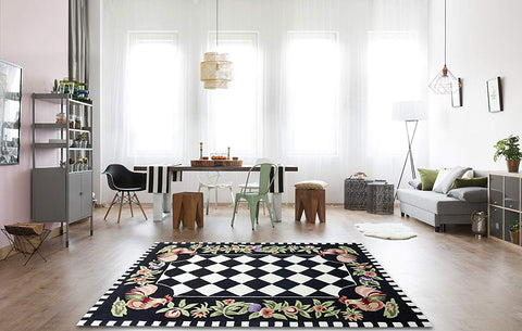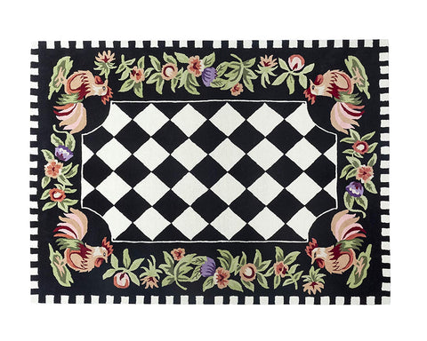 Rooster Checkered Wool Rug Handtufted Area Rug 8 x 10 - J10-IN-207-8X10