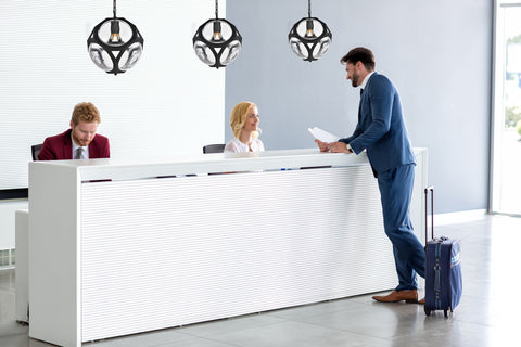 The Vega pendant in a flat black finish displays geometric excellence and a wonderous style. The light is encapsulated with a cube-like shade that is both open and closed at the same time as smooth clear bulbous glass covers the openings and minimally obscures the light that shines through. Add contemporary style to your space and amaze your guests with this pendant.