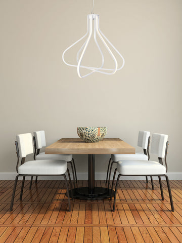 The sinuous lights of the Dahlia LED pendant in a white finish adds artistry and a modern flair to any aesthetics. Since the light is embedded in the frame itself, there is no need for a light bulb, creating an airy space within. Whether you decide to have only one, or hang multiple together, this light will brighten any room.