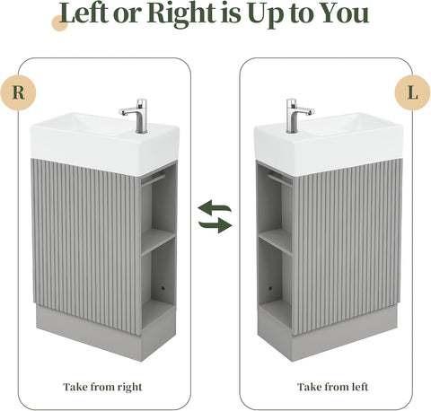 - Functional Storage Solution: This freestanding bathroom vanity includes a soft-close cabinet door for quiet operation and a spacious interior for storing towels, paper products, and toiletries. The open side shelves provide convenient storage for toothbrush cups or decorative items and can be installed on either the left or right side to suit your layout.