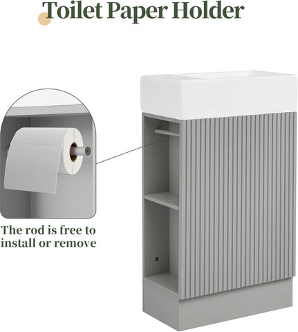 18.6 Inch Small Bathroom Vanity with Sink – Solid Wood Narrow Vanity Cabinet with Side Storage