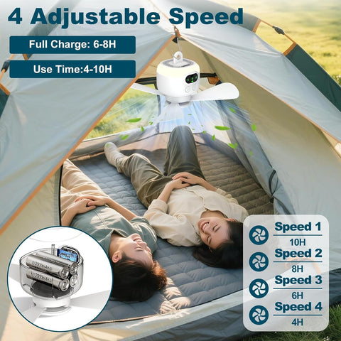 Portable Camping Fan,Tent Ceiling Fan,Rechargeable 8000mAh with Light & Hook,Timable & Auto Shut Off,Detachable Fan Blade, Used for Tent Canopy RV Gazebo Beach Dormitory Bedroom A101-B0DZCLGQY2