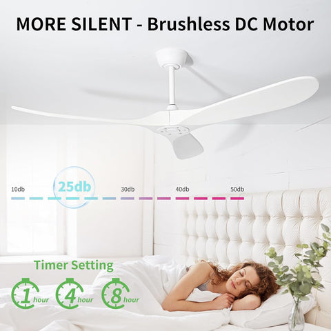 60 Inch White Wood Ceiling Fan - 3 Solid Wood Blades, Indoor/Outroom DC Motor Ceiling Fan with Remote Control, 6-Speed Reversible Quiet Operation, Timer Function, No Light, Damp Rated A102-B0CMTJK7L8