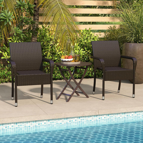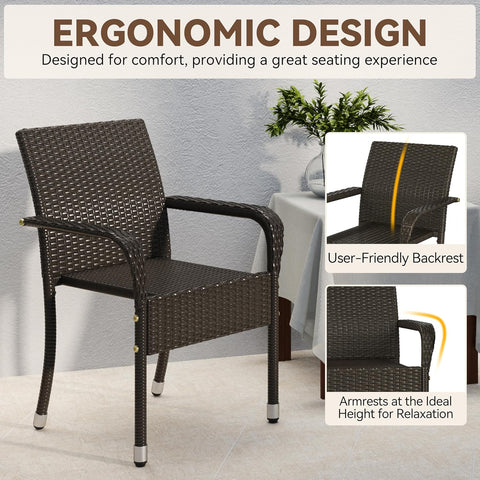 Set of 2 Stackable Outdoor Rattan Dining Chairs, All-Weather Armchair w/Armrests, Steel Frame for Garden, Patio, Deck