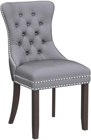 Velvet Dining Chairs Set of 4, Tufted Upholstered Chairs with Nailhead Back and Ring Pull, Solid Wood Legs, Light Grey