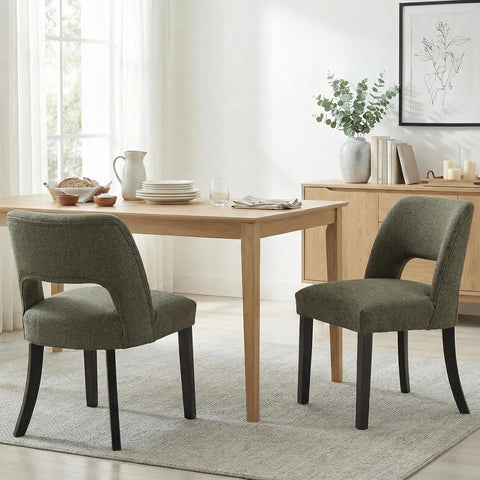 Wooden Dining Chairs Set of 2, Mid-Century Modern Fabric Upholstered Kitchen Chairs with Foot Pegs, Green