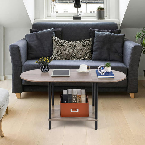 Coffee Tables,2-Tier Small Oval Center Table Industrial Modern Style Coffee Tables with Storage Shelf and Wood