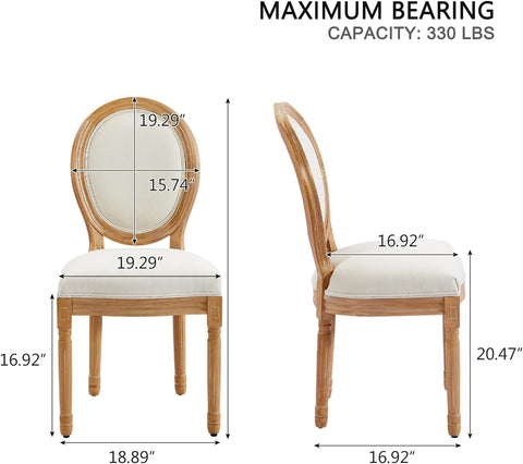 French Country Dining Chairs Set of 2, Vintage Louis-Style Chairs with Curved Backrest and Carved Solid Wood Frame for Dining Room or Restaurant