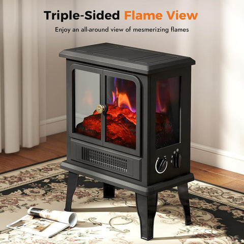 Freestanding Electric Fireplace Stove Heater for Indoor Use, 1500W Space Heater with Realistic Flame Effect and Adjustable Heat