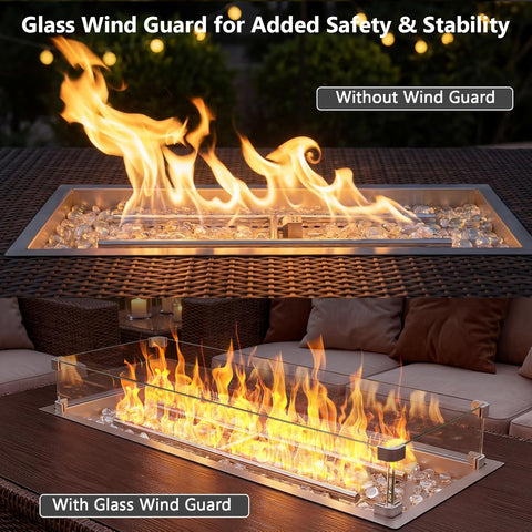 Elevate your outdoor living with this 30 x 10 Inch Drop-in Fire Pit Kit, Premium Stainless Steel Modern Fire Trough with Tempered Glass Wind Guard, Burner Pan. Precision-built for custom fire features, this kit delivers consistent heat distribution and an impressive flame display.