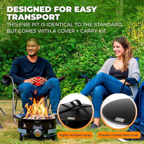 Portable Propane Fire Pit, 19-inch, 58,000 BTU with Fire Pit Cover & Carry Kit, Smokeless Gas Firebowl