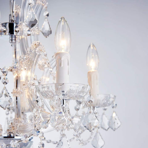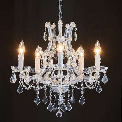 This Maria Therese K9 crystal chandelier light fixture will brightly and widely illuminate your room, creating a superior and classy atmosphere. It's perfect for your living room, dining room, bedroom, foyer, or any other dry space.
