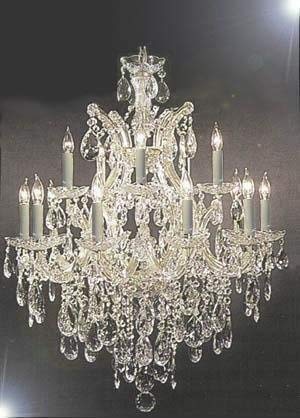 This beautiful Chandelier is trimmed with Empress Crystal(TM) This beautiful Chandelier is trimmed with Empress Crystal (TM) Maria Theresa 100% Crystal Chandelier. A great European Tradition. Nothing is quite as elegant as the fine crystal chandeliers that gave sparkle to brilliant evenings at palaces and manor houses across Europe. This two-tier version from the Maria Theresa collection is decorated with 100% crystal that capture and reflect the light of the candle bulbs, each resting in a scalloped bobache. The timeless elegance of these chandeliers is sure to lend a special atmosphere in every home.Assembly Required 16 LIGHTS Finish: Silver.