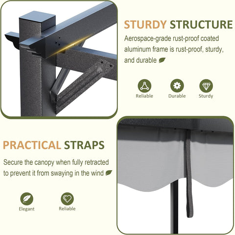 10'x12' Outdoor Pergola with Retractable Canopy, Patio Metal Heavy-Duty Gazebo Shelter