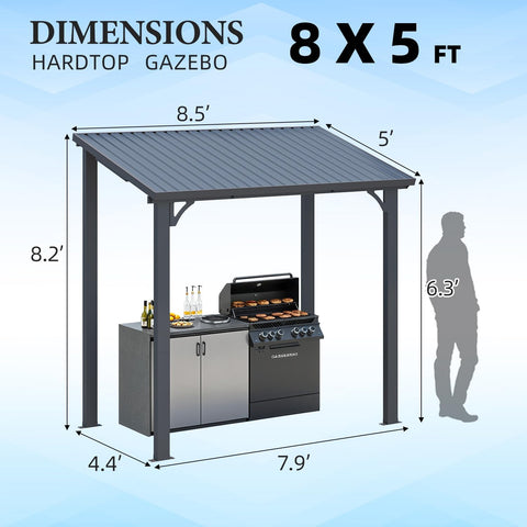 5' x 8' Outdoor Hardtop Grill Gazebo, Wall-Mounted Pergola Heavy Duty 8x5 Lean to Metal Awnings Gazebos on Clearance