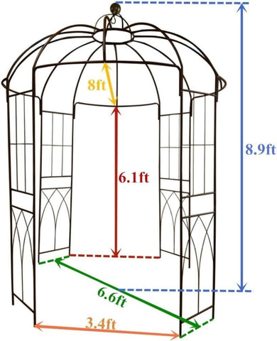 French Style Birdcage Shape Heavy Duty Gazebo,9'Highx 6‘6"Wide,Pergola Pavilion Arch Arbor Arbour Plants Stand Rack