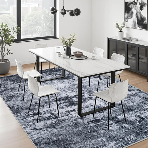 5x7 Washable Abstract Area Rug, Modern Low Pile Non-Slip Carpet for Living Room Bedroom Black