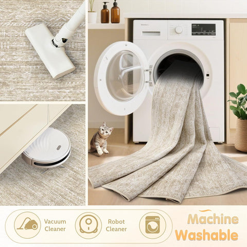 - Machine Washable Rug: This surface of washable rugs 8x10 is stain-resistant and easy to clean. The low-pile rug can resist stains, so spills and messes wipe away effortlessly. You can use vacuum cleaner or robot vacuum cleaner to clean the carpets for daily care.