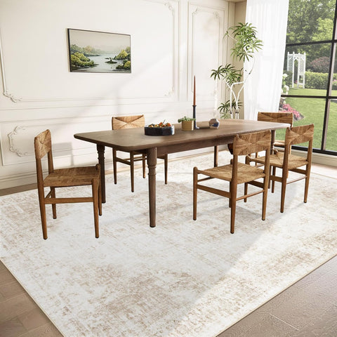 8x10 Washable Vintage Medallion Area Rug, Non-Slip Low Pile Soft Carpet Beige