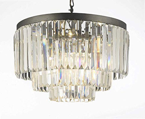 Set of 3-1 Palladium Empress Crystal (tm) Glass Fringe Chandelier and 1 Retro Palladium Glass Fringe Rectangular Chandelier and 1 Palladium Crystal Glass Fringe 3-Tier Chandelier - 1EA 1157/17B + 1EA 1156/12 + 1EA 1100