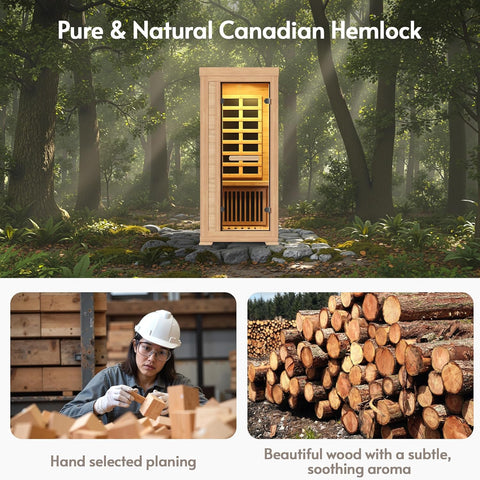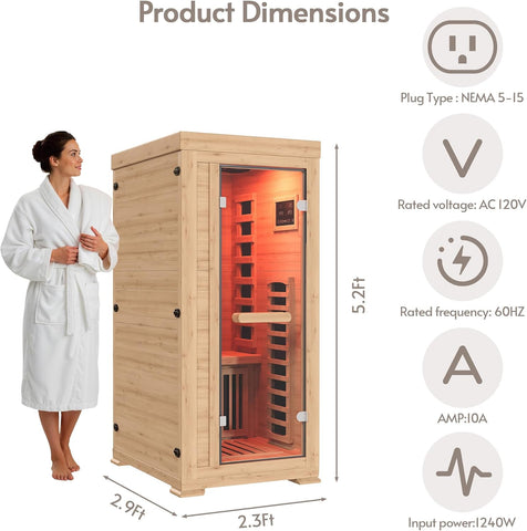ENSTVER Infrared Wood Sauna 5.4Ft 1 Person