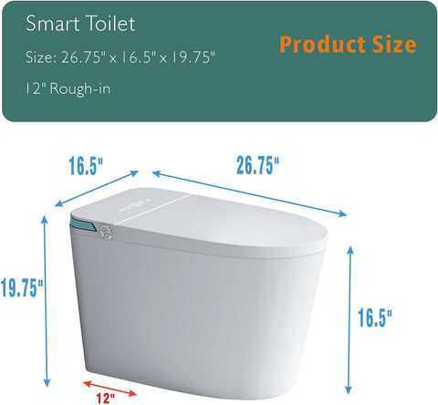 Elevate your space with this luxury intelligent smart toilet with instant warm water sprayer and dryer, auto flush,foot sensor operation. Designed with both style and functionality in mind, this piece makes a perfect addition to any home.