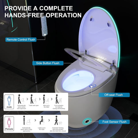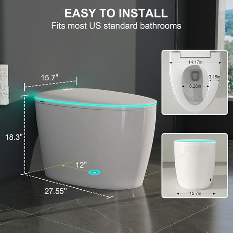 Elevate your space with this smart toilet with bidet built-in, auto open/close lid & flush, foam shield anti-splash. Designed with both style and functionality in mind, this piece makes a perfect addition to any home.