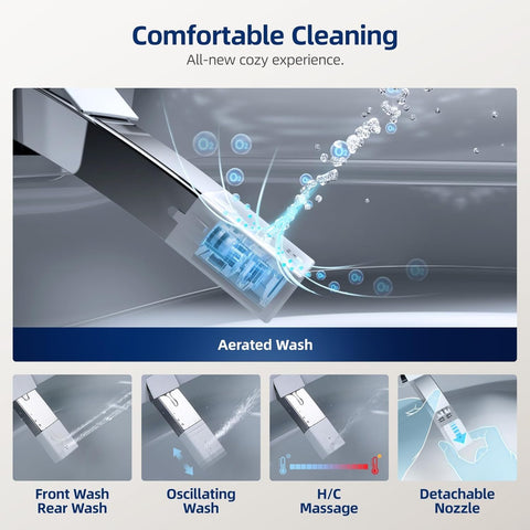 Elevate your space with this smart toilet with built-in tank - electric bidet toilet with side knob control, foot sensor operation, auto flush. Designed with both style and functionality in mind, this piece makes a perfect addition to any home.
