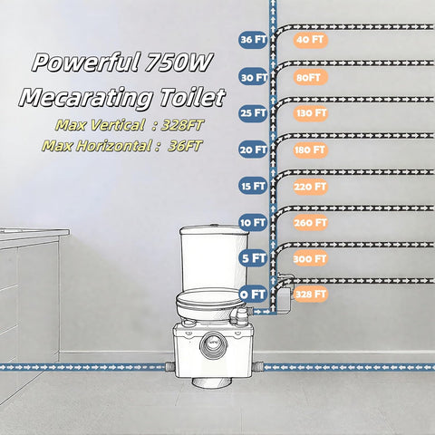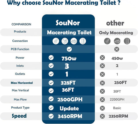 SouNor 750W Macerating Upflush Smart Toilet with Pump System for Basement,Toilets with Bidet 3-Water-inlet [ADA Tall]