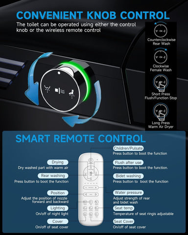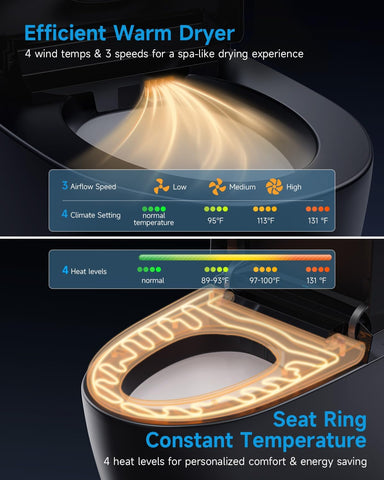 Elevate your space with this wansid black smart toilet with bidet built in, auto open/close lid, heated seat, warm wash & dryer, night light. Designed with both style and functionality in mind, this piece makes a perfect addition to any home.