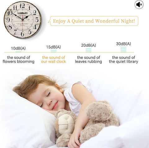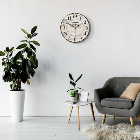 14 Inch Retro Vintage French Country Style Round Wooden Wall Clock Silent Battery Operated Non-Ticking Decorative