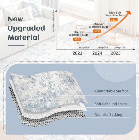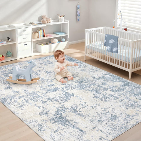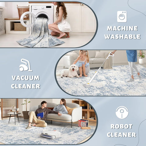 5x7 Area Rugs for Living Room: Washable Modern Abstract Area Rug Large Neutral Soft Rug Non Slip Low Pile Carpet for