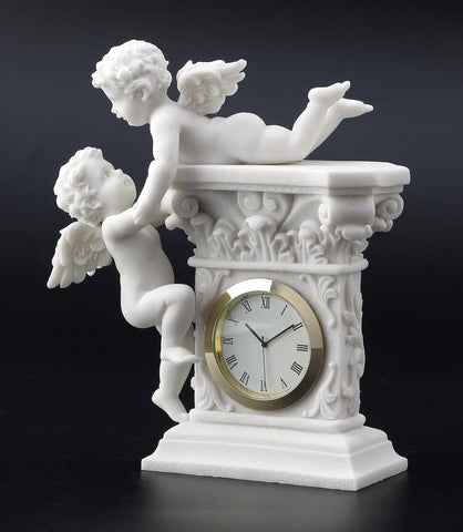 6.5 Inch Cherub Playtime Mantle Clock Resin Sculpture Marble White Finish A134-B0CP27F96T