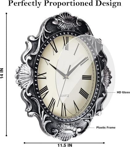 AYRELY 14 Inch Oval Rustic Wall Clock, Wall Clocks Battery Operated, Country Style Silent Non Ticking Clock
