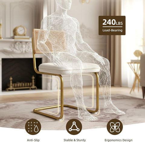 CangLong Rattan Dining Chairs Set of 2, Modern Kitchen Chairs with Natural Mesh Rattan Backrest & Solid Thick Metal