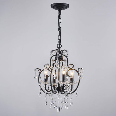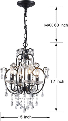 4-Lights Crystal Chandelier with K9 Crystals, Black Farmhouse Style Pendant Light Fixture, H17 x D12, Chain Adjustable A109-B08N4NDY5X