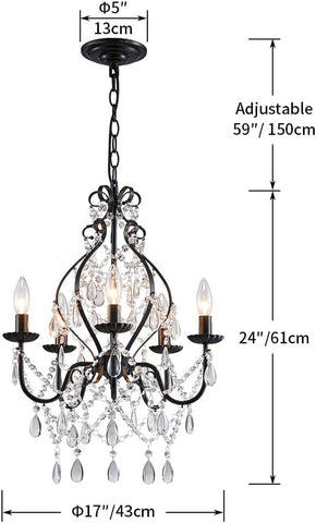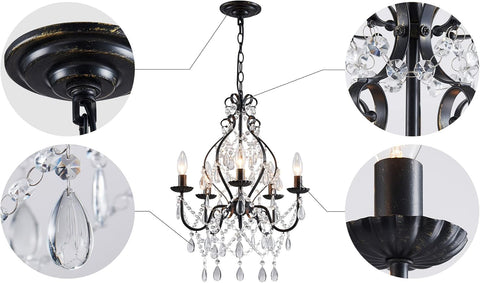 5-Lights Crystal Chandelier, Farmhouse Pendant Light Fixtures, H24 x D17,Chain Adjustable Max 59", Black Finish A109-B08MKLCXT3