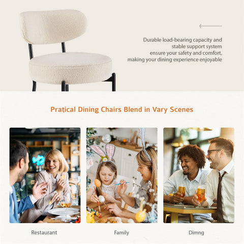 Dining Chairs Set of 2, Mid Century Modern Boucle Upholstered Kitchen Chair with Curved Backrest & Metal Legs for