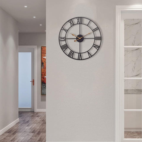 Elevate your space with this large industrial wall clock with roman numerals, indoor silent non-ticking retro clock. Designed with both style and functionality in mind, this piece makes a perfect addition to any home.