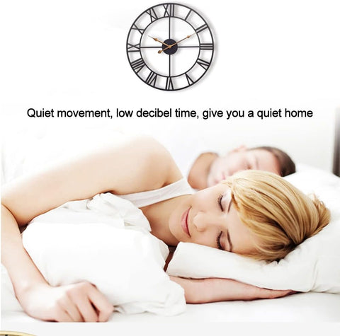 Large Industrial Wall Clock with Roman Numerals, Indoor Silent Non-Ticking Retro Clock