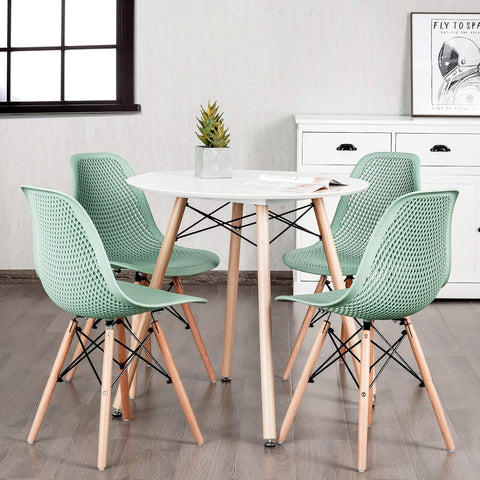 Set of 2 Modern Dining Chairs, Outdoor Indoor Shell PP Lounge Side Chairs with Mesh Design, Beech Wood Legs