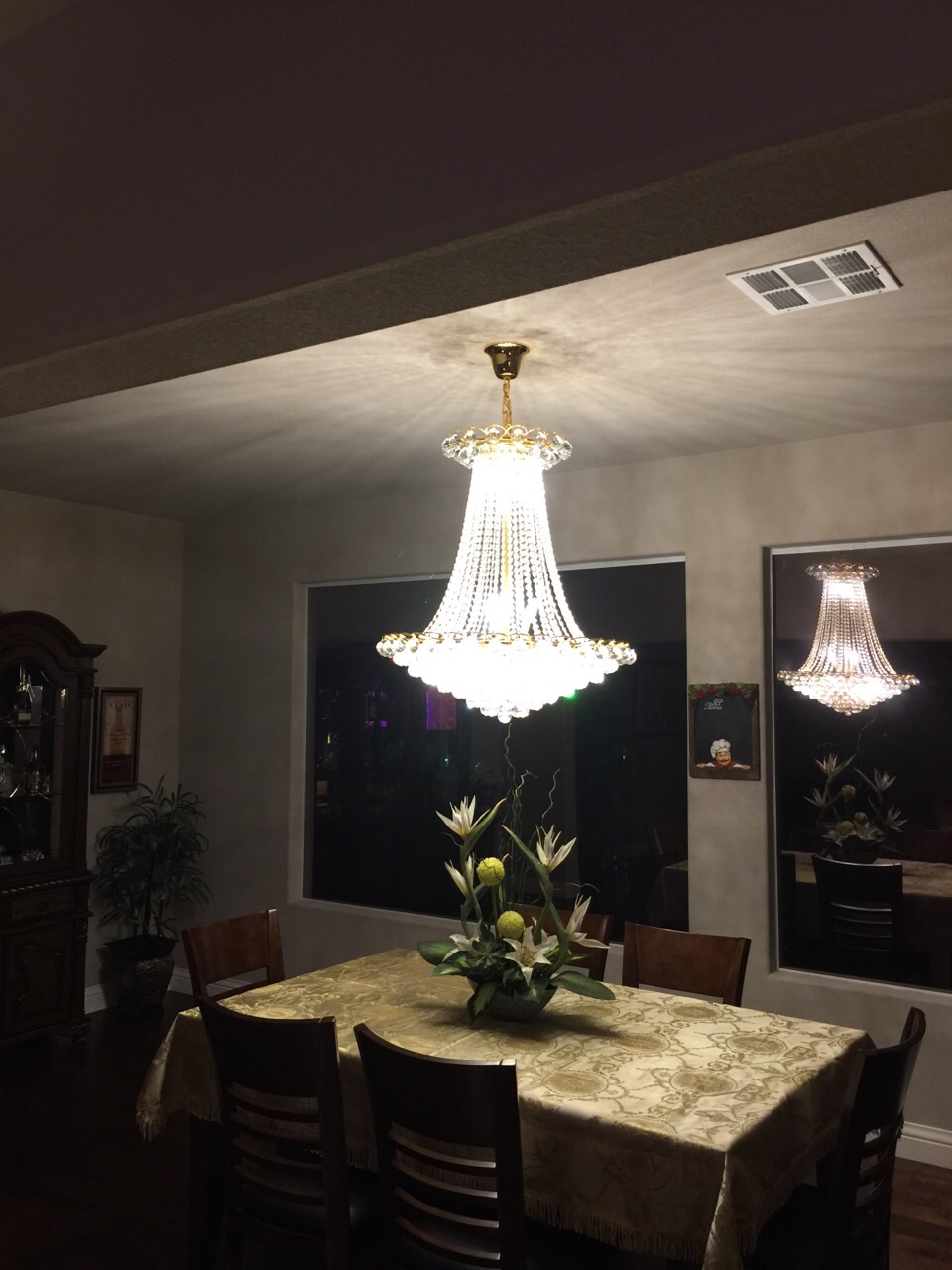 Beautiful chandelier! It completely transformed our room and adds the perfect glow.