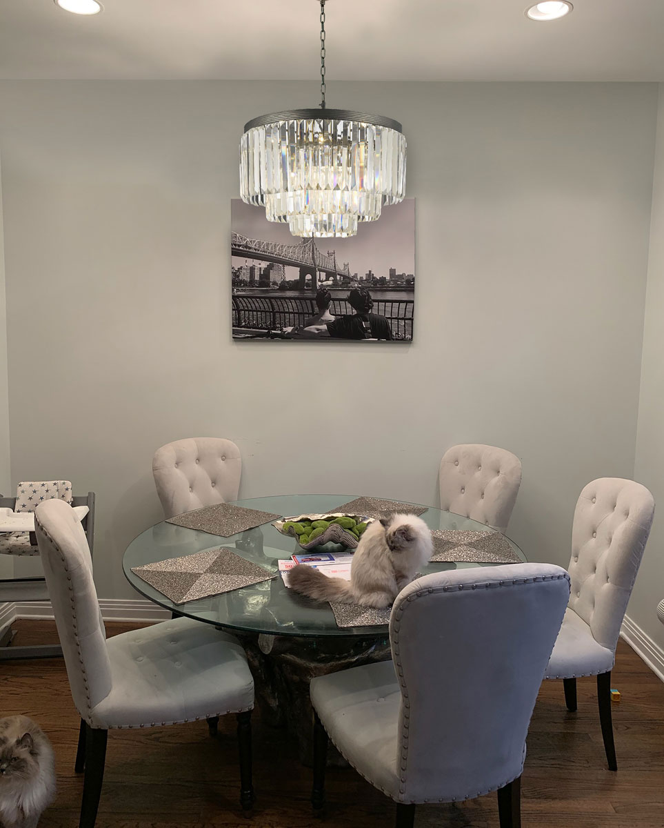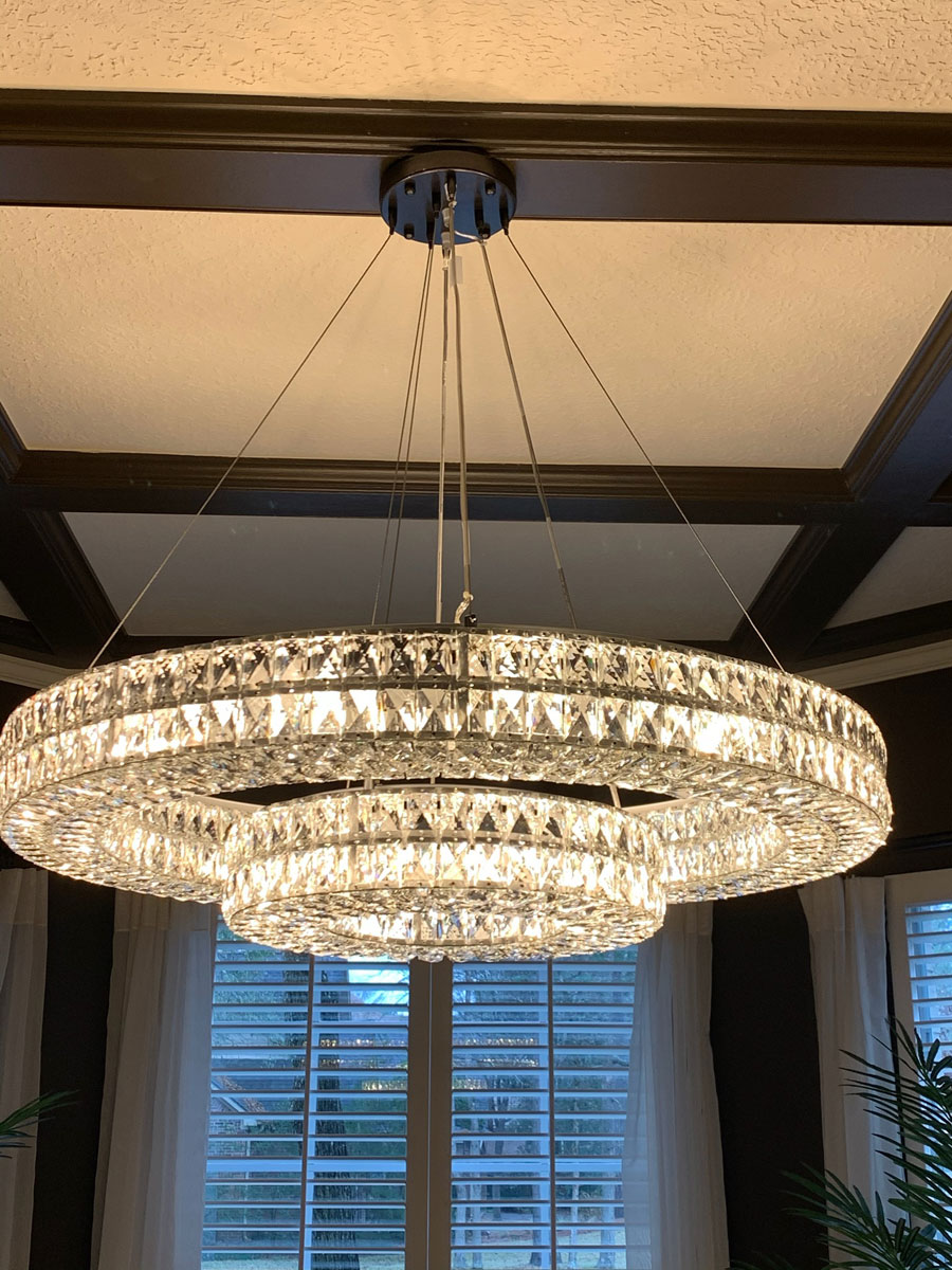 Very elegant and bright. Customer service was helpful choosing the right size for our space.