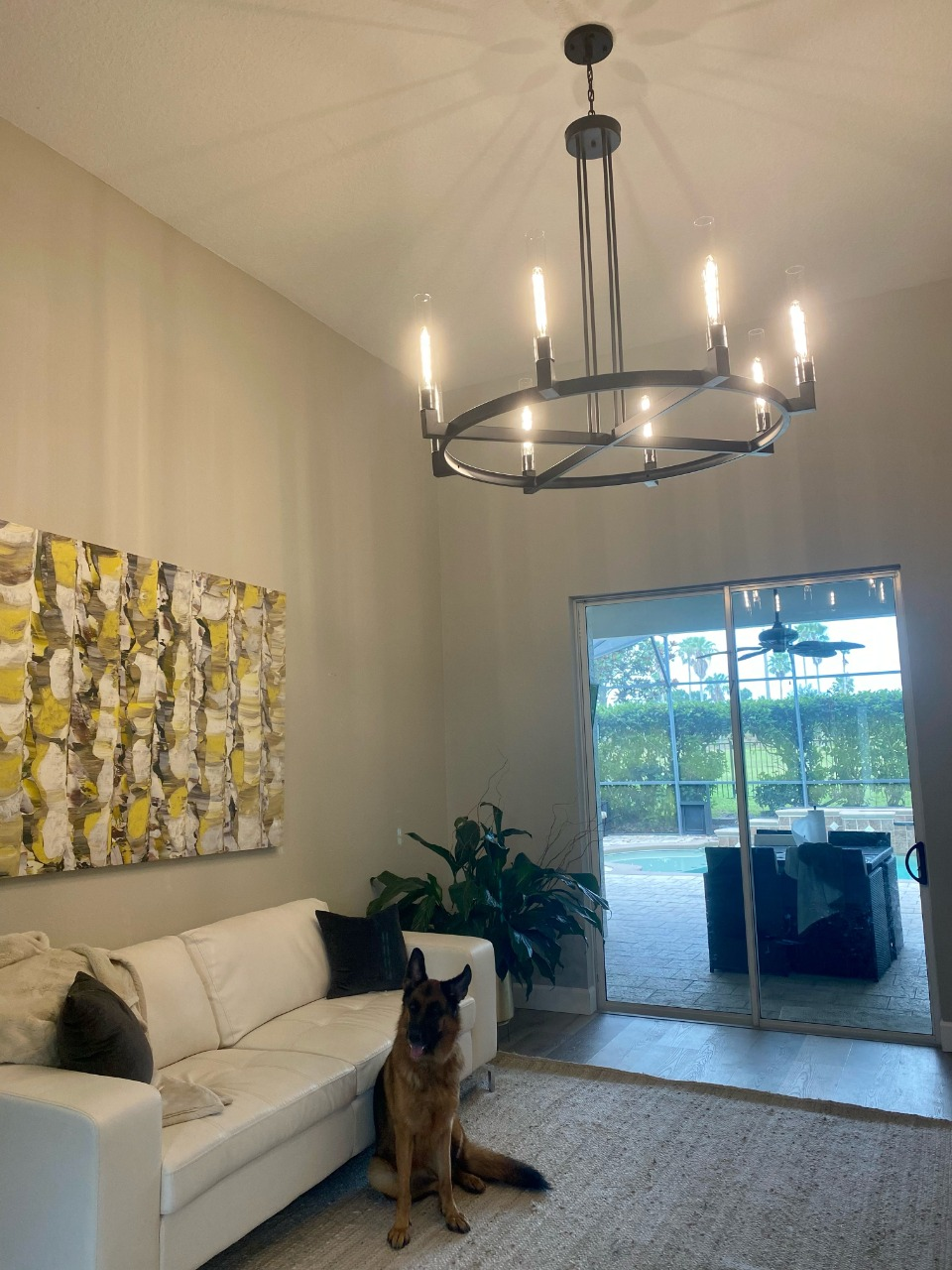 Beautiful chandelier! It completely transformed our room and adds the perfect glow.