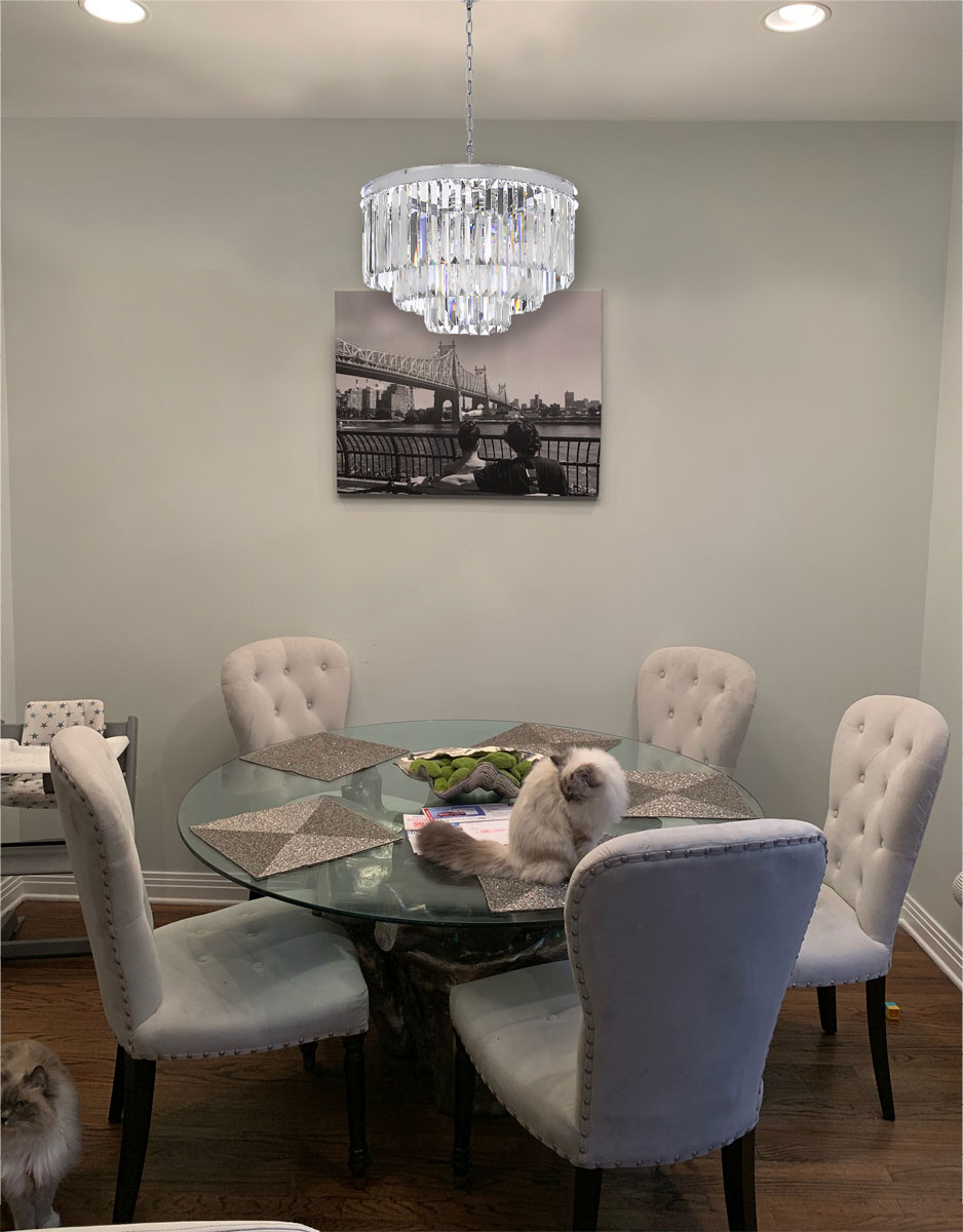 Very elegant and bright. Customer service was helpful choosing the right size for our space.