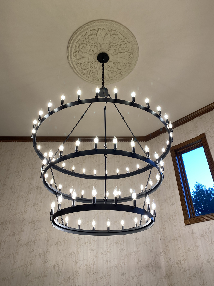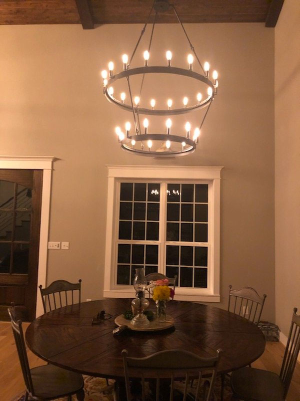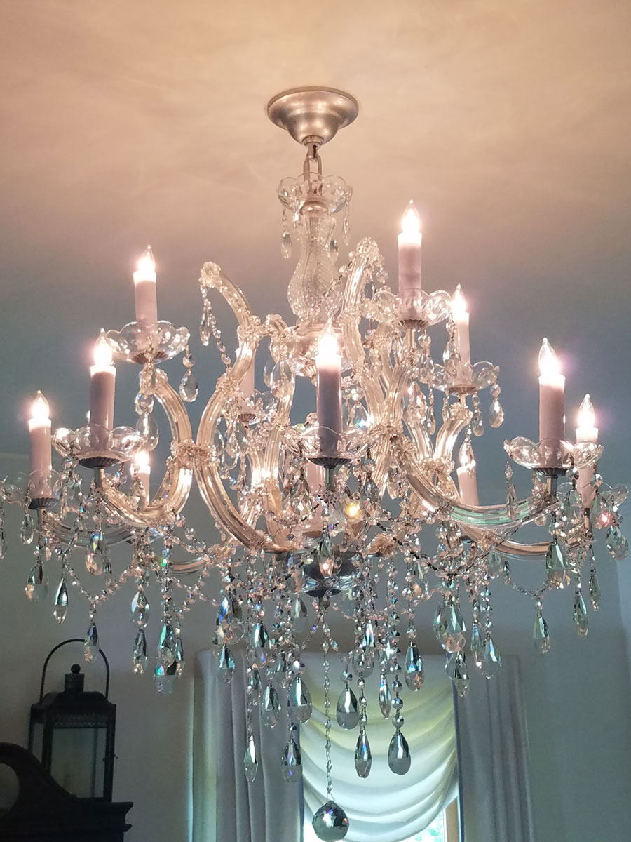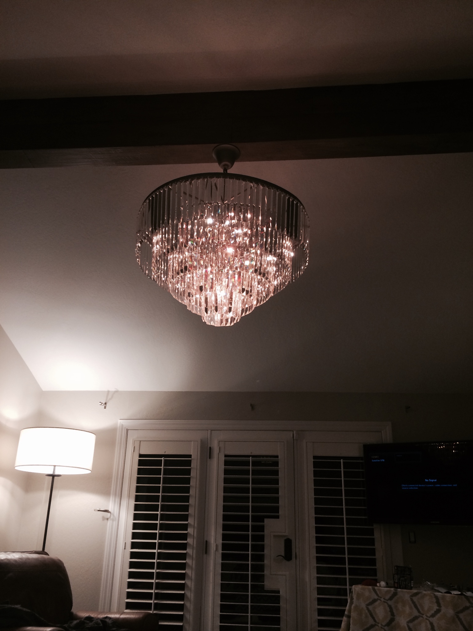Beautiful chandelier! It completely transformed our room and adds the perfect glow.
