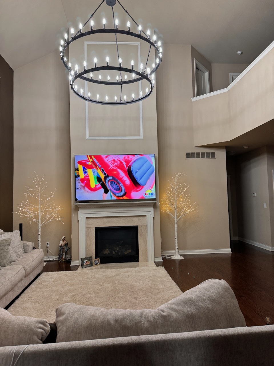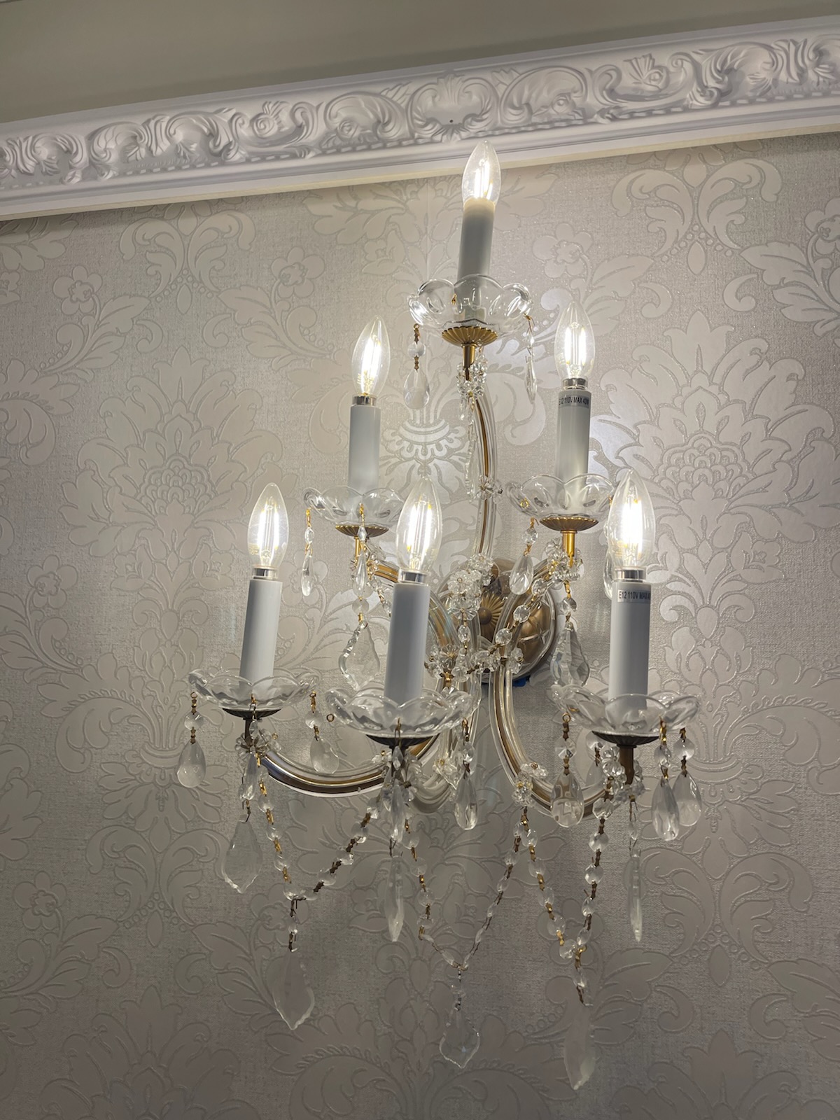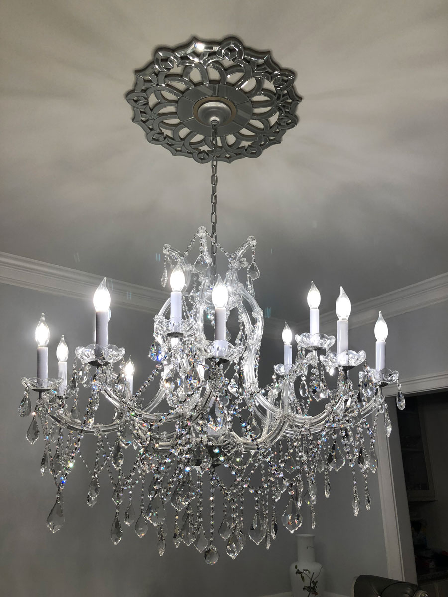 Beautiful chandelier! It completely transformed our room and adds the perfect glow.